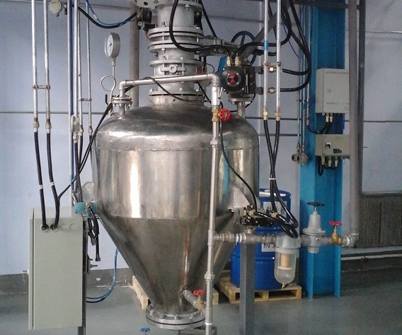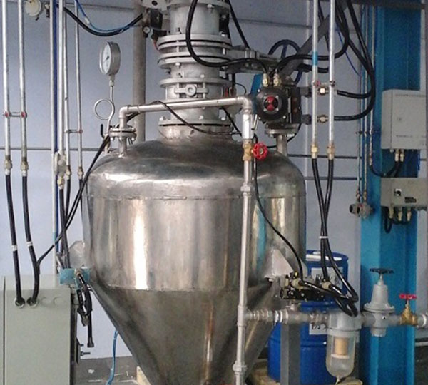 產品名稱: 榮信科技正壓密相輸送系統 產品簡介: 正壓密相輸送系統是由前端的密閉高壓設備提供動力,在系統的起點和終點形成一個壓力差,依靠高壓氣力以及相關設備的作用,將粉體物料...